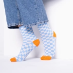 Chaussettes en coton peigné à carreaux - Beige et bleu clair 37-40