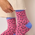 Chaussettes pailletées en coton peigné léopard - Rose et bleu 37-40