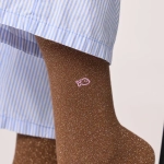 Chaussettes pailletées en coton peigné unies - Marron 37-40