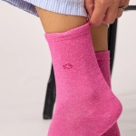 Chaussettes pailletées en coton peigné unies - Rose néon 37-40