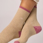 Chaussettes pailletées en coton peigné vintage - Beige 37-40