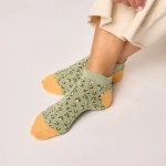 Socquettes pailletées en coton peigné léopard - Vert clair 37-40