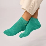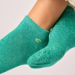 Socquettes pailletées en coton peigné unies - Vert 37-40