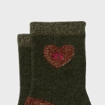 Chaussettes en coton peigné Coeur - Vert foncé Taille 37-40