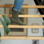 CHAUSSETTES LÉOPARD KAKI ET ARGENT EN COTON PEIGNÉ Taille 37-40