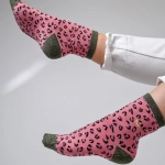 CHAUSSETTES LÉOPARD ROSE ET KAKI EN COTON PEIGNÉ Taille 37-40