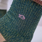 CHAUSSETTES VINTAGE PAILLETTÉE VERT EN COTON PEIGNÉ Taille 37-40