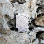 L'ensemble de montres STAMPS "Khloé" est une combinaison porteuse de la montre STAMPS Khloé et du bracelet de montre assorti, qui est fabriqué dans notre matériau durable STAMPStexx®️. Celui-ci est imprimé à l'aide d'une méthode qui préserve les ressources. Le motif à carreaux blancs et beiges varie d'un bracelet à l'autre. Avec 400 pièces, le set est une édition limitée et vous sera envoyé dans un emballage spécial portant le même motif que le bracelet.