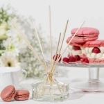Le diffuseur Macaron Framboise, véritable objet décoratif, avec ses tiges de rotin soigneusement disposées dans un élégant flacon en verre, diffuse son parfum par capillarité pour embaumer votre intérieur en douceur.