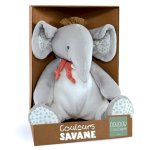 Avec ce doudou elephant gris de la Collection "COULEURS SAVANE", Bébé saura facilement jouer, rêver et s'éveiller au monde qui l'entoure ! Mon doudou elephant, un grand Doudou pour accomplir de grands rêves ! Ce Doudou elephant est composé de deux tissus, l'un ultra doux en velours de coton et l'autre en coton imprimé pour un toucher différent à apprécier en fonction de son humeur. Orné de 2 nouettes en coton lange à manipuler par les petites mains de bébé. Cette diversité de matières permettra à bébé d'apprécier des moments de calme, d'apaisement et d'endormissement.