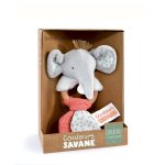 Avec ce hochet bébé COULEURS SAVANE, bébé saura facilement apprivoiser ces sublimes animaux pour jouer, rêver et s'éveiller au monde qui l'entoure ! Ce hochet éléphant apportera de grands moments de jeu ! Anneau en bois facile à manipuler par les petites mains de bébé, agrémenté de tissus en coton et coton lange et velours de coton, il participera assurément à l'éveil de tous les sens de bébé ! Présenté dans sa jolie boîte kraft ouverte, à offrir dès la naissance.