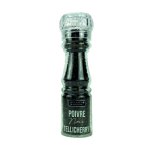 Moulin Poivre Tellicherry 75g Liste des ingrédients : Poivre noir de Tellicherry origine Inde Idéal pour assaisonner vos viandes ou tout...