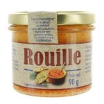 Quelquefois appelée mayonnaise provençale,la rouille est une sauce provençale épicée et relevée qui est habituellement servie avec la soupe de poisson ou la bouillabaisse. Elle est composée de foie de lotte, de pomme de terre, de tomate ainsi que d'un peu d'ail et d'huile d'olive et le tout passé au pilon et au mortier, agrémenté d'un peu de fumet de poisson. Energie: 429kcal / 1764kJ Protéines: 1,8g Matières grasses: 45,0 g dont acides gras saturés: 3,6g Glucides: 2,2g dont sucres: 1,3g Sel: 1,9g
