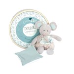 Optez pour ce doudou Souris Botanic 100% BIO. Parce que bébé mérite le meilleur, ce Doudou est confectionné en matières BIO : velours de coton bio, peluche frisée en coton bio et lange de coton bio. Présenté dans une jolie boite cadeau ronde en bois naturel, ce Doudou frais aux couleurs tendres est accessoirisé de lange de coton au motif végétal délicat. Un cadeau idéal dès la naissance.