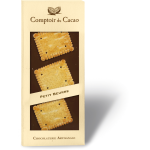 Ingrédients: Chocolat lait (pâte de cacao 36%, sucre, lait entier en poudre, pur beurre de cacao, lécithine de soja, arôme naturel de vanille, sel). Petit beurre (farine de blé (gluten), sucre, beurre frais de baratte (lait) 20%, oeufs frais entiers, jaunes d'oeufs, poudre de lait écrémé, sel de guérande, poudre à lever (diphosphate disodique, carbonate acide de sodium), arôme naturel. Traces éventuelles d'arachides, fruits à coques.