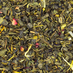 Mélange de thés Sencha et Chun Mee avec une note fruitée de mirabelle.
